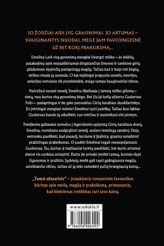 Emelina Lark visą gyvenimą stengėsi išvengti miško – jo šešėlių, pasakojimų apie nepaaiškinamai dingstančius žmones ir tankiose girių glūdumose slypinčią paslaptingą magiją. Tačiau kad ir kaip toli bėgtų, miškas visada ją suranda. O kai mįslingai prapuola senelis, istorijos, anksčiau vertusios tik prunkštelėti, staiga tampa bauginančiai tikros.