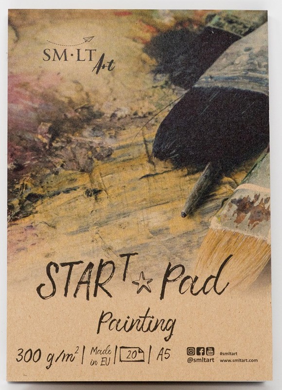 Balto popieriaus bloknotas tapybai. Su kieta nugarėle. Vidinis popierius yra be rūgščių (Acid-free), pH neutralus.