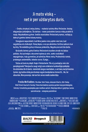 Freida McFadden į The New York Times, Amazon Charts, USA Today, Wall Street Journal ir Sunday Times bestselerių sąrašus pateko kaip psichologinių trilerių ir šmaikščių pasakojimų apie medikus autorė. Rašytoja dirba ir gydytoja, kurios specializacija – smegenų pažeidimai.