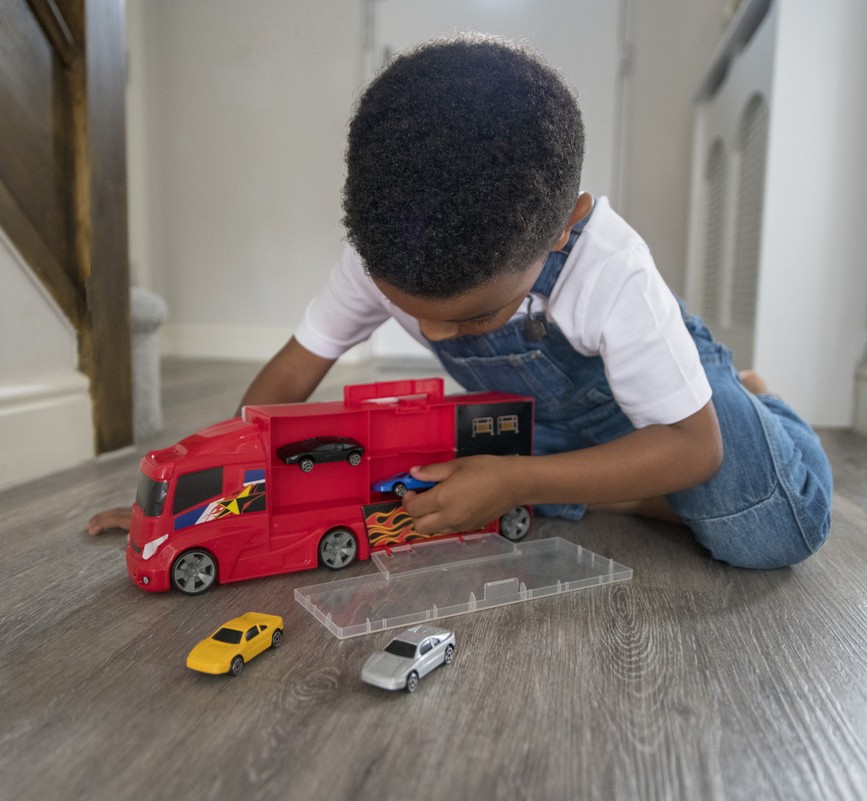 „Teamsterz“ transporteris – puikus būdas mažiesiems vairuotojams laikyti ir nešiotis savo automobilių kolekciją! Ryškų ir patvarų transporterį galima neštis kaip dėkliuką arba stumti grindimis ir leisti jam riedėti pačiam. Transporteryje telpa iki 12 „Teamsterz“ automobilių. Šis rinkinys bus puiki dovana mažiesiems transporto priemonių entuziastams, kuri paskatins vaizduotę lavinančius žaidimus ir bus šauni, valandų valandas besitęsianti pramoga! Žaisdamas su transporto priemonėmis vaikas taip pat lavins ir socialinius bei motorinius įgūdžius. Rinkinyje esantys modeliai puikiai tinka mažoms rankutėms, jie yra maždaug 7,5 cm dydžio, turi kokybišką metalinį korpusą ir besisukančius ratus.
