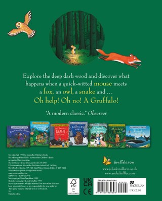 A quick-witted mouse takes a stroll through a deep dark wood. When Fox, Owl and Snake want to eat him, he makes up tales of a fearsome Gruffalo to scare them off. What will Mouse do he stumbles upon a real live hungry Gruffalo?