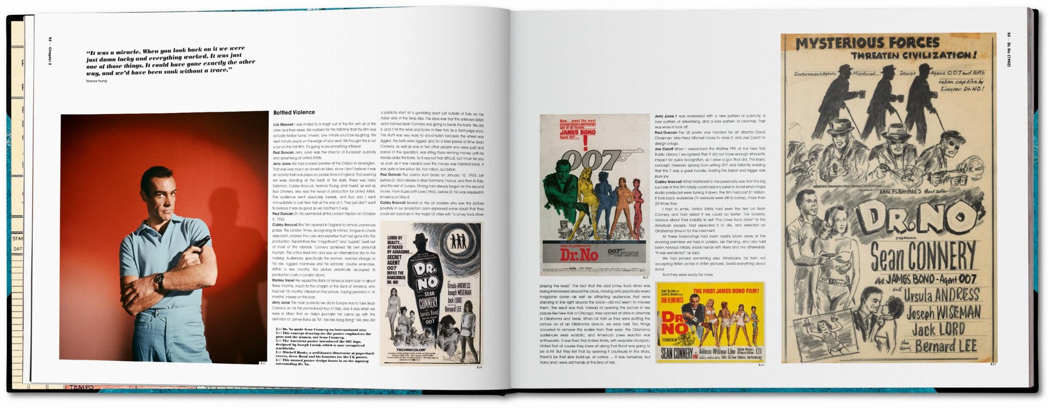 EON Productions opened their archives of photos, designs, storyboards, and production materials to editor Paul Duncan, who spent two years researching over one million images and 100 filing cabinets of documentation. The result is the most complete account of the making of the series, covering every James Bond film ever made, beginning with Dr. No (1962) and ending with No Time To Die (2021), including the spoof Casino Royale (1967) and Never Say Never Again (1983).
