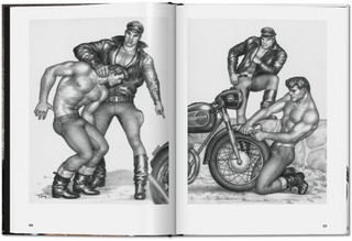The Little Book of Tom: Bikers includes Tom’s earliest images for Physique Pictorial, Kake in motorcycle gear, biker panel stories, and sizzling single drawings, all packed into 192 pages of sexy, masculine men enjoying other masculine men in black leather, blue jeans, and high black boots. On bikes.