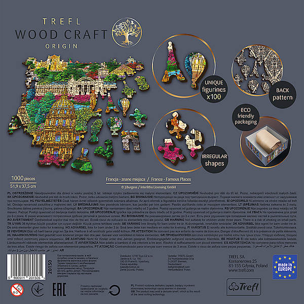 Dėlionės patinka visiems – tai ir smagi, ir lavinanti veikla. Dėlionės – puikus laiko praleidimo būdas tiek vienam, tiek su draugų kompanija. Kokybiška 1000 detalių dėlionė, pagaminta iš tikros medienos pasitelkiant lazerinio pjovimo technologiją. Dėlionės detalės turi unikalias netaisyklingas formas, todėl ją sudėti – rimtas iššūkis! Sudėliotos dėlionės dydis – 51,9 x 37,5 cm. Rinkinyje yra 519 x 375 mm plakatas su dėlionės vaizdu. Dėlionė supakuota ekologiškoje pakuotėje.