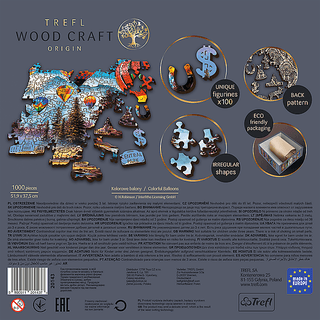 Dėlionės patinka visiems – tai ir smagi, ir lavinanti veikla. Dėlionės – puikus laiko praleidimo būdas tiek vienam, tiek su draugų kompanija. Kokybiška 1000 detalių dėlionė, pagaminta iš tikros medienos pasitelkiant lazerinio pjovimo technologiją. Dėlionės detalės turi unikalias netaisyklingas formas, todėl ją sudėti – rimtas iššūkis! Sudėliotos dėlionės dydis – 51,9 x 37,5 cm. Rinkinyje yra 519 x 375 mm plakatas su dėlionės vaizdu. Dėlionė supakuota ekologiškoje pakuotėje.
