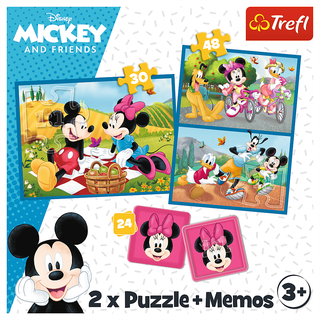 Dėlionės – tai smagus ir įdomus būdas ugdyti svarbiausius pažintinius įgūdžius užsiimant praktine veikla. Dėlionės yra puikus laiko praleidimo būdas tiek vienam, tiek su draugais. Dėlionės – tai klasika, kuri patiks įvairaus amžiaus vaikams, padės lavinti loginį mąstymą, motorinius įgūdžius ir koordinaciją. Rinkinyje yra 2 dėlionės (30 ir 48 det.) ir atmintį lavinantis žaidimas (24 žaidimo kortelės). Žaidimo memos esmė – surinkti po dvi vienodas korteles. Korteles paveikslėliais į apačią sudėkite ant stalo arba ant grindų. Savo ėjimo metu vaikas ima dvi korteles ir patikrina, ar jos sutampa. Jei pavyko sudėti paveikslėlį, abi korteles padėkite į šalį. Jei sudėti nepavyko, korteles grąžinkite atgal. Mylimi herojai neleis mažyliui liūdėti ir mokymosi procesą pavers tikru malonumu! Žaidimas lavina vaiko loginį mąstymą, pastabumą ir dėmesio sutelkimą. Dėlionės dydis: 27,5 x 20,5 cm