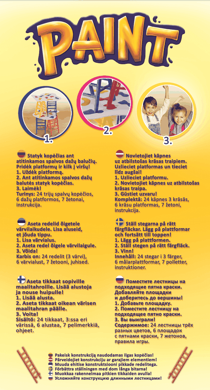 Kelk kopėčias į viršų! Statyk kopėčias ant atitinkamos spalvos dažų balučių, uždėk daugiau platformų ir pasiek aukštumas!