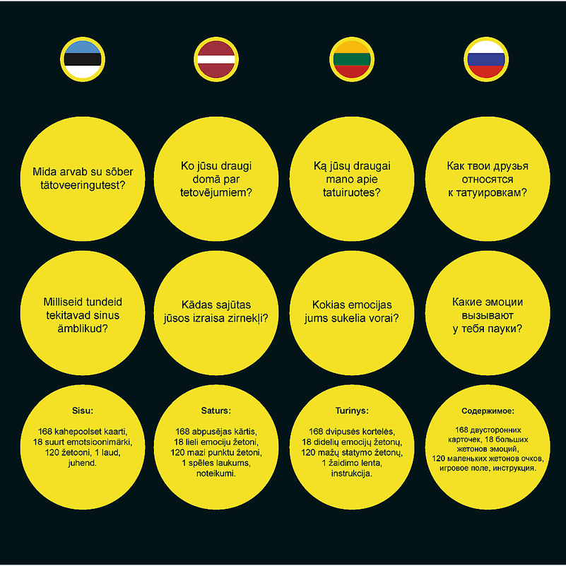Ką jūsų draugai mano apie tatuiruotes? Kokias emocijas jums sukelia vorai? Žaidimo tikslas yra geriau pažinti save ir kitus žaidėjus smagiu būdu.