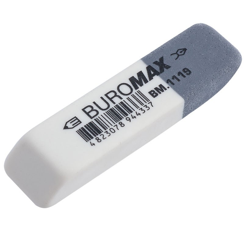 Balta pusė skirta trinti grafitinį pieštuką 3H - 2B; pilka - trina rašalą.
