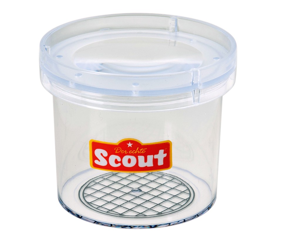 Šis vabzdžių stebėjimo rinkinys – tai indelis su ventiliacinėmis angelėmis ir 3 kartus padidinantis stiklas. Dydis – apie 75 x 65 mm.