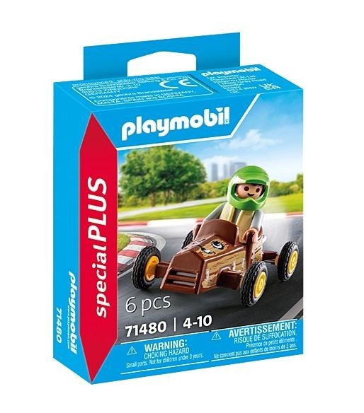 PLAYMOBIL Special Plus žaidimų figūra - vaikas su go-kartu ir šalmu.