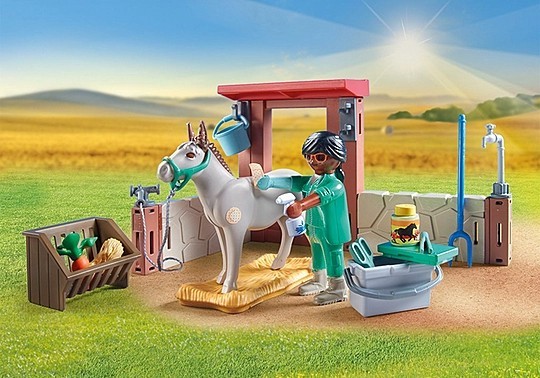 Liūdni Eeyore garsai sklinda iš tvartelio. O, ne! Laimei, veterinaras greitai atvyksta padėti asilų šeimai. Jai aktyviai padeda jauna savininkė, kuri svajoja, kad vieną dieną pati taps veterinaru. Padėkite veterinarui rūpintis asilai su PLAYMOBIL pradinio paketo „Ūkio veterinaras“. Doktorė švelniai apžiūri asiliuką po budriais mamytės žvilgsniais. Laimei, sergančiam gyvūnui galima greitai padėti. Kitas laukia mažasis žiurkėnas. Veterinarui visada yra daug darbo. Fantastiški PLAYMOBIL pradiniai…