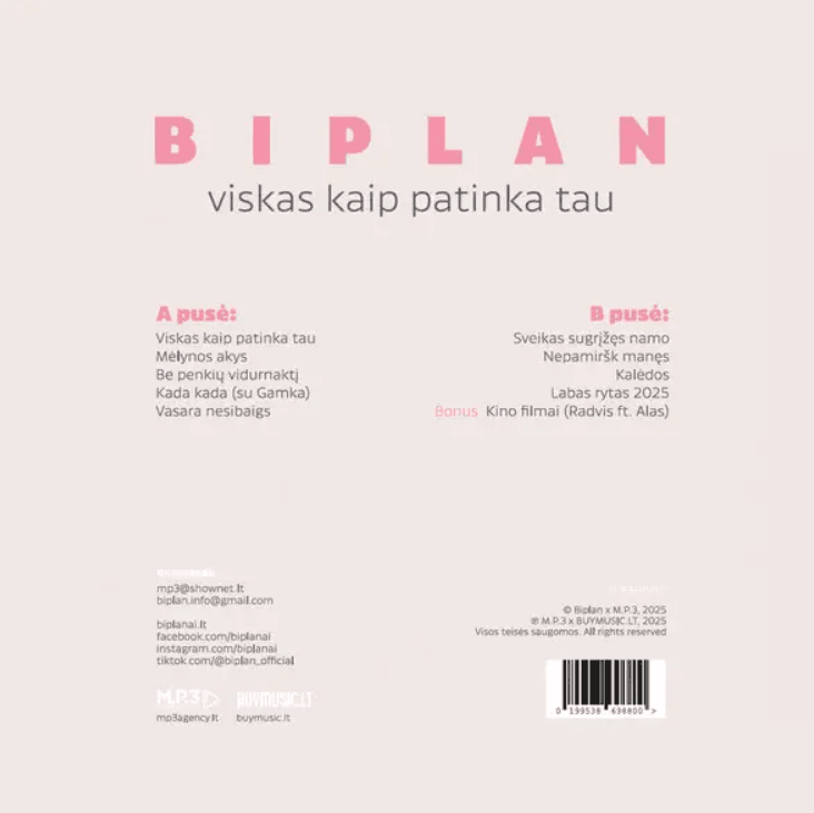 Biplan – „Viskas kaip patinka tau“ (LP): ilgai lauktas 2025 m. studijinis albumas vinile su hitais „Mėlynos akys“ ir „Labas rytas 2025“.