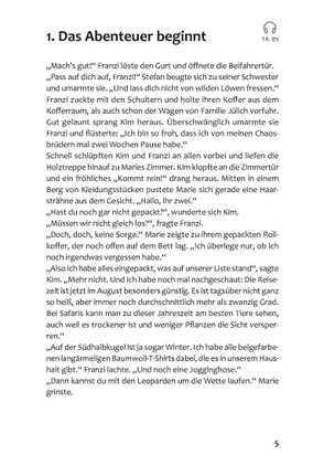 Die drei !!! knacken jeden Fall. Sie dürfen Maries Vater zu Dreharbeiten nach Südafrika begleiten und können es kaum erwarten, auf Safari die berühmten Big Five zu sehen. Doch dann verschwinden Dinge aus ihrer Unterkunft, sogar wichtige Filmaufnahmen werden entwendet. Schon stecken die drei Detektivinnen mitten in einem neuen Fall zwischen Sonne, frechen Äffchen und Löwenbabys. Dabei treffen sie auf viele Menschen und alle sprechen natürlich Englisch!