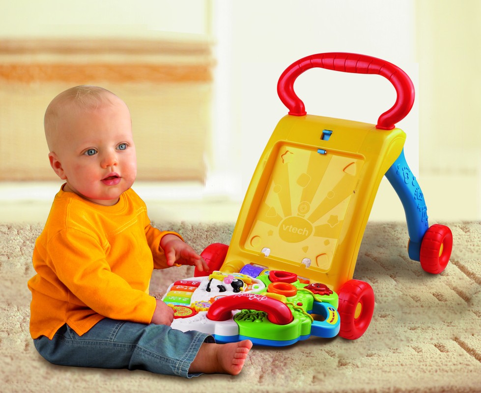Sveikas atvykęs į smagų gyvūnėlių namelį! Su šia vaikštyne mažylis gali ne tik žengti pirmuosius žingsnius, bet ir susipažinti su mielais gyvūnėliais bei žaisti linksmus žaidimus. Vaikštynė turi tekstūrinius ratukus, patogią rankenėlę ir patvarų dizainą, kuris itin svarbus ir patikimas mažyliui bandant eiti. Smagus ir kupinas veiklos vaikštynės namelis turi 5 šviečiančius mygtukus, krumpliaračius, gyvūnėlius bei daug įdomių veiklų, pradedant formelių rūšiavimu ir baigiant telefonu, kurį galima nuimti ir žaisti atskirai. Užsiimdamas smagia veikla, klausydamas linksmos muzikėlės bei frazių, mažylis susipažins su skaičiais, formomis bei gyvūnais.