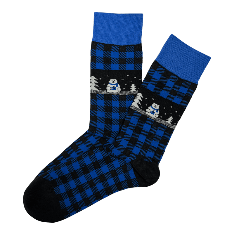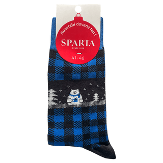 Vyriškos kalėdinės kojinės su šventiniais motyvais. Kojinės patogiai priglunda, todėl leis šiltai pasitikti ateinančias šventes ar net taps miela dovana.