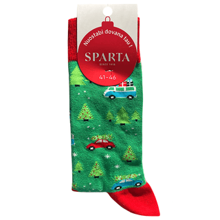 Vyriškos kalėdinės kojinės su šventiniais motyvais. Kojinės patogiai priglunda, todėl leis šiltai pasitikti ateinančias šventes ar net taps miela dovana.