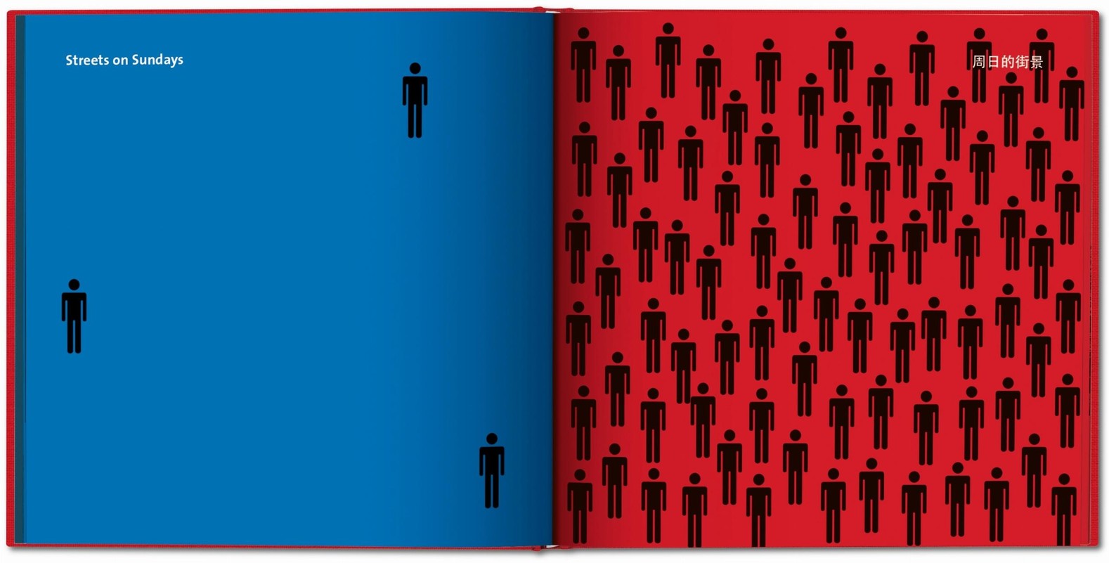 Already an online phenomenon, East Meets West is the first volume in designer Yang Liu’s successful infographic series. Conceived and designed with perceptive wit and her signature graphic simplicity, Yang Liu’s pictograms convey the obvious and sometimes not so obvious discrepancies in life on opposite sides of the globe.