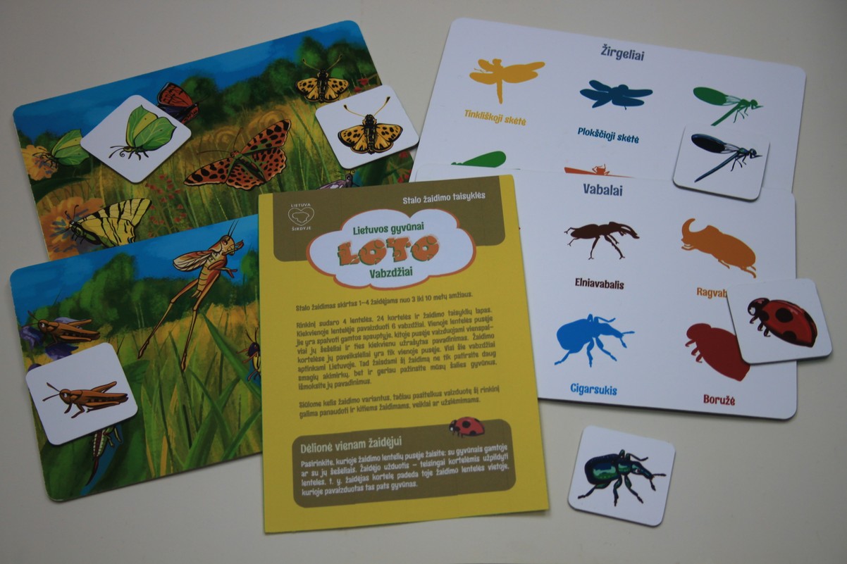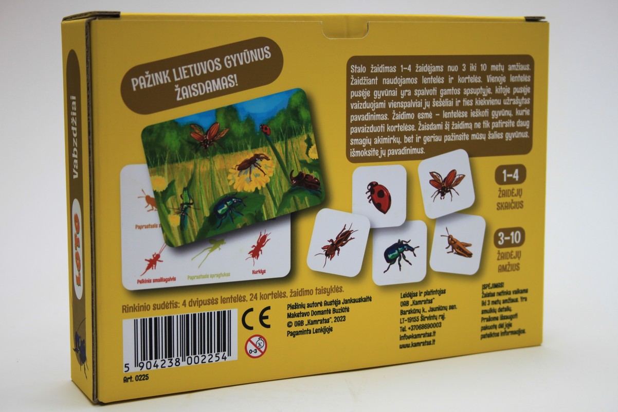 Stalo žaidimas iš serijos „Lietuva širdyje“. Pažink Lietuvos gyvūnus žaisdamas! Rekomenduojamas žaidėjų amžius: 3–10 m. Žaidėjų skaičius: 1–4. Rinkinį sudaro 4 dvipusės žaidimo lentelės, 24 kortelės ir žaidimo taisyklių lapas. Kiekvienoje lentelėje pavaizduoti 6 vabzdžiai. Vienoje lentelės pusėje jie yra spalvoti gamtos apsuptyje, kitoje pusėje vaizduojami vienspalviai jų šešėliai ir ties kiekvienu užrašytas pavadinimas. Žaidimo kortelėse jų paveikslėliai yra tik vienoje pusėje. Visi šie vab…