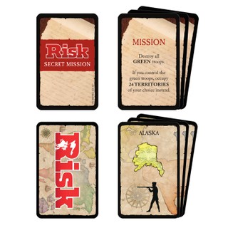 „Hasbro“ žaidimą sau ras kiekvienas! „Hasbro“ žaidimą sau ras kiekvienas! Stalo žaidimas „Risk“ – tai aljansų, išdavysčių ir netikėtų atakų žaidimas, kupinas veiksmo ir rizikos. Žaidėjai pradeda su kariuomenės figūrėlių rinkiniu, kurias strategiškai išdėsto ant žemėlapio siekdami užimti atitinkamas teritorijas. Išdėliojus figūrėles, žaidėjai bando užkariauti vieni kitų žemes įsiverždami ir stodami į mūšius, o kauliuku išridenti taškai lemia pergalę arba pralaimėjimą. Žaidėjas, kuris pašalina visus savo priešininkus ir užima visas teritorijas, laimi žaidimą. Žaidimas anglų kalba.