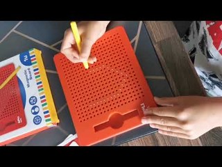 Šis nepaprastas žaidimas – tai nedidelė raudonos spalvos magnetinė lenta su specialiu metalinį galiuką turinčiu geltonu pieštuku, skirtu naudoti ant lentos.