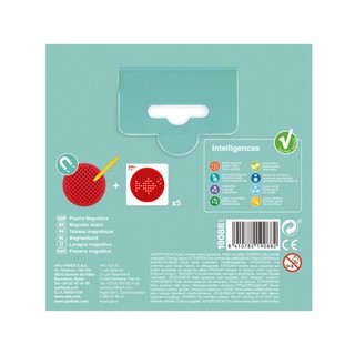 Taip pat rinkinyje yra 5 kortelių su iš viso 10 pavyzdžių, kurie duos pradžią kūrybiškumui, o vėliau gautą kūrybinį impulsą vaikai galės išreikšti kurdami savo unikalius paveikslėlius. Šis magnetinis žaidimas padeda vystyti smulkiosios motorikos įgūdžius, atmintį ir vaizduotę, skatina koncentraciją ir loginį-matematinį mąstymą.