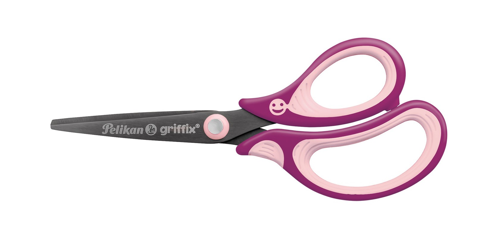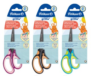 „Pelikan griffix“ mokyklinių žirklių ašmenys dėl titano nitrido dangos yra net 3 kartus kietesni už plieną. Smailūs ašmenys ypač tinka tiksliam, detaliam kirpimui. Ergonomiška rankena pagaminta iš kieto ir minkšto aukštos kokybės plastiko, be PVC ir latekso. Kaip ir kituose „griffix“ rašymo mokymosi sistemos gaminiuose, linksmas veidukas ant rankenos padeda išlaikyti taisyklingą rankos padėtį. Žirklės taip pat turi vietą vardui užrašyti.