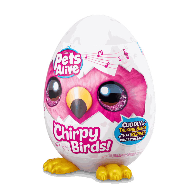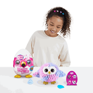Susipažink su linksmiausiais pasaulyje paukščiais! Šie ypač minkšti ir švelnūs „Chirpy Birds“ paukščiukai visada turi apie ką pakalbėti! Pasakyk ką nors savo naujam linksmam draugui ir klausykis, kaip jis pakartos tavo žodžius! Be to, paukščiukas taip pat moka dainuoti ir kartu su savimi kiaušinyje slepia daugiau šaunių siurprizų. Susipažink su savo naujuoju linksmuoju draugu!