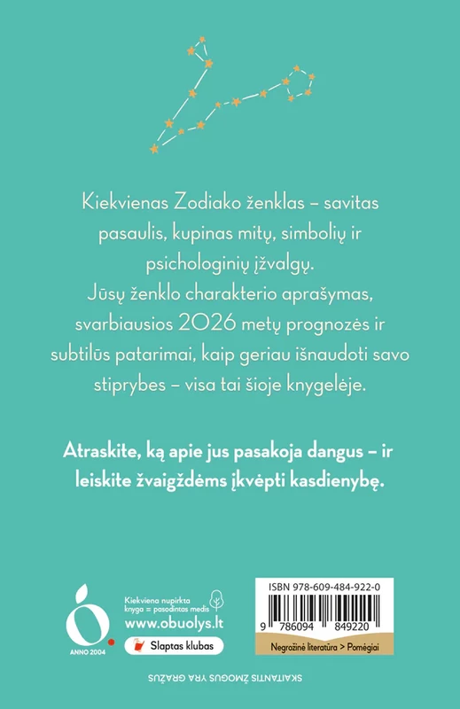 „Horoskopai 2026“ kolekcija – 12 Zodiako ženklų knygelių, atskleidžiančių kiekvieno charakterį, stiprybes ir sėkmės periodus. Atrask savo ženklą arba padovanok artimam žmogui – nes kiekvienas žvaigždynas slepia unikalią istoriją.