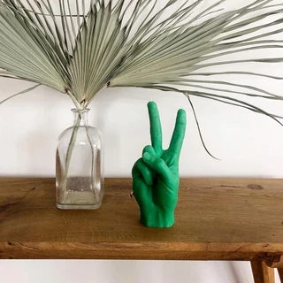 Nugalėtojai ir taikos mylėtojai sutinka – nėra geresnės žvakės už šią gražią, rankų darbo, natūralaus dydžio V formos žvakę. Galima rinktis iš įvairių spalvų. Supakuota kaip nugalėtoja, tokia pat tikra kaip hipio širdis.