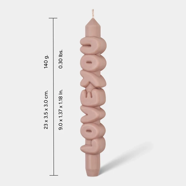 Siaurėjanti žvakė su aiškia žinute „Myliu tave“. Leiskite žvakei kalbėti už jus.