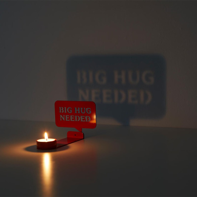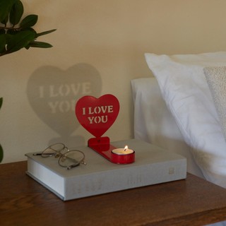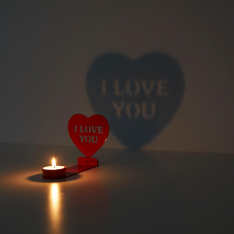 PASAKYK TAI SU LIEPSNA. Uždegus žvakę, laikiklis ant sienos projektuoja žinutę. Originali detalė, kuri tikrai neliks nepastebėta.