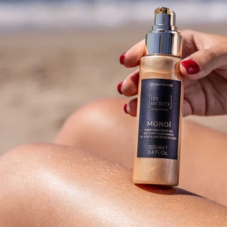 „Les Secrets“ žvilgantis kūno gelis „Monoï“ suteikia jūsų odai unikalų spindesį ir yra kvepiantis svaiginančiu bei egzotišku „Les Secrets“ „Monoï“ aromatu. Šis produktas pasižymi ypatinga geline tekstūra, kuri lengvai įsigeria. Jame yra hialurono rūgšties, kuri padeda pagerinti odos išvaizdą, padaro ją lygesnę ir su auksiniu atspalviu.