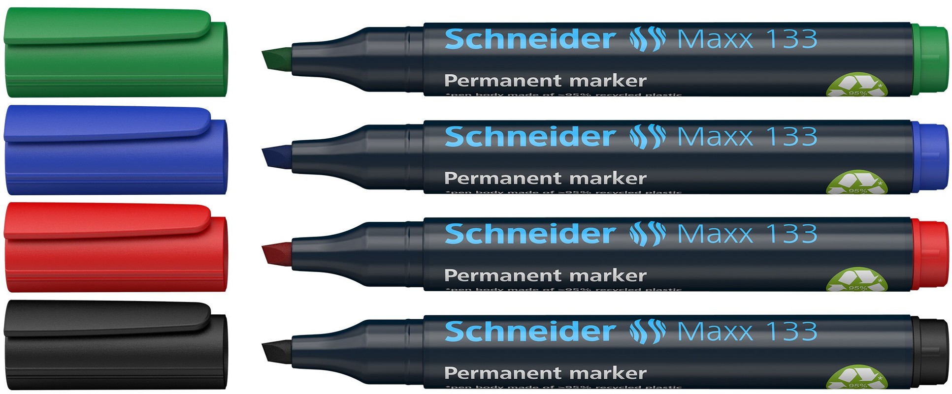 Rinkinyje – 4 spalvos: juoda, raudona, mėlyna, žalia. Skirtas rašyti ant kartono, popieriaus, plastiko, stiklo, metalo, medžio ir beveik visų kitų medžiagų. Ryškios spalvos rašalas greitai džiūsta, yra atsparus vandeniui ir šviesai. Speciali „cap-off“ technologija neleidžia rašalui išdžiūti net ir palikus žymeklį be dangtelio 2–3 dienas. Žymeklis beveik bekvapis, be toluolo ir ksileno. Plonas, kišeninis modelis su praktišku spaustuku. Ekologiškas ir tausojantis išteklius – *korpusas pagamintas iš 95 % perdirbto plastiko.